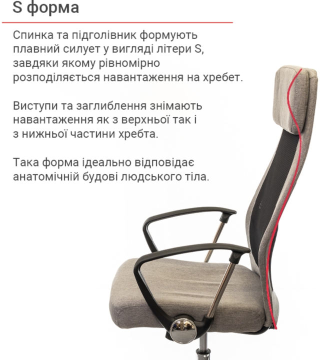 Оббивка. В якості оббивки в даній моделі використана нейлонова сітка та тканина. Ці матеріали відмінно зарекомендували себе при інтенсивному використанні в офісі завдяки еластичності, високій повітропроникності, міцності і зносостійкості. Сітчаста спинка легко пропускає повітря, а значить сидіти в такому кріслі дуже комфортно, особливо в спекотну погоду. Вставки з тканини в районі поперекового вигину та підголівника виконують не тільки декоративну, але і практичну функцію.
