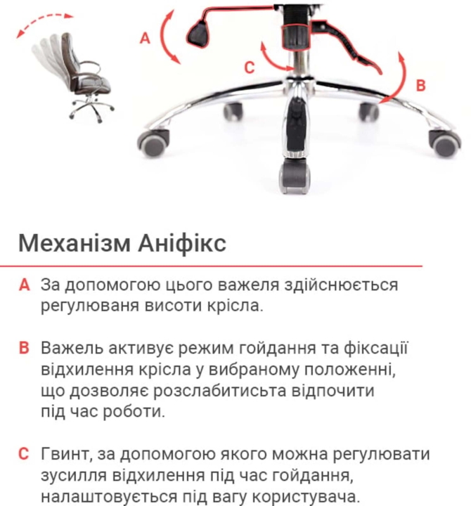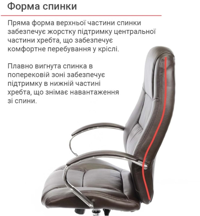 Крісло АКЛАС Оран CH ANF (PU Темно-коричневий) - стильна модель, яка ідеально підходить для кабінету керівника, оформленого у сучасному стилі. За рахунок елегантного дизайну та гармонійного поєднання різних елементів стане чудовим помічником та родзинкою інтер'єру. Оран – це крісло, в якому гармонійно поєднується класичний дизайн, якісні матеріали та сучасні механізми. У ньому ви зможете комфортно працювати, не відчуваючи втоми від багатогодинного сидіння. Завдяки правильно сформованому рельєфу його сміливо можна віднести до категорії ергономічних крісел. М'який наповнювач формує дуже м'яку посадку, що обволікає.Дизайн. Елегантна класика – ось як можна охарактеризувати це крісло. Силует досить стриманий, але завдяки вдалому поєднанню ліній прошивки, шкіри та хромованого металу модель виглядає розкішно та затишно. Сидіння та спинка прикрашені перетяжками прошивки, які разом із товстим шаром наповнювача формують зручне посадкове місце. Блискучі металеві деталі гармонійно обрамляють оббивку і підкреслюють красу крісла. Світла екокожа відмінно доповнить інтер'єр жіночого кабінету або кабінету зі світлим або чорним деревом.Оббивка. Як і належить солідному статусу моделі, Оран виготовлена з якісного екошкіри. Цей матеріал практично не поступається своїми якостями натуральній шкірі, а ціна - це його основна перевага. Він має натуральну основу і відмінно зарекомендував себе за роки використання в офісі. Екошкіра міцна, еластична та проста у догляді.Механізми. Це крісло оснащене механізмом аніфікс.Це популярний механізм з можливістю фіксації в будь-якому зручному положенні, який допоможе вам урізноманітнити робочий час приємним сеансом відпочинку, навіть не перериваючи важливий телефонний дзвінок або продовжуючи складати важливий звіт. Механізм досить просто відрегулювати під певну вагу користувача за допомогою циліндричної ручки під сидінням. Газліфт допоможе встановити оптимальну для Вашого зростання висоту сидіння.Підлокітники. Елегантний дугоподібний вигин металевих підлокітників, доповнений м'якими накладками, не тільки чудово доповнює зовнішню красу крісла, але й убереже ваші руки від контакту з холодним металом та подарує їм почуття максимального комфорту. Висота підлокітників підібрана таким чином, щоб у нижньому положенні сидіння крісло можна присунути впритул до столу.Хрестовина. Хрестовина у даного крісла із міцного хромованого металу. Завдяки цьому йому забезпечено надійність та стійкість. При цьому він легко пересувається за допомогою роликів. Хромоване покриття дуже стійке, воно відмінно захищає поверхню від дрібних подряпин та пошкоджень. Така хрестовина з часом не втратить свій первинний зовнішній вигляд і довго радуватиме вас своїм холодним блиском. Універсальні прогумовані ролики, які за замовчуванням встановлені в кріслі, підійдуть для будь-якого типу покриття для підлоги. Також для цієї моделі підійдуть ролики з хромованими накладками у стилістиці крісла.Особливості. Спинка крісла має правильний вигин у ділянці нирок, завдяки чому знімається навантаження з хребта і ви будете продуктивно і комфортно працювати, абсолютно не відчуваючи втоми навіть наприкінці робочого дня. М'які валики формують зручну бічну підтримку.