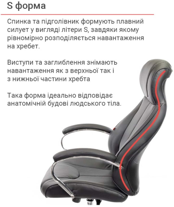Дизайн. Дана модель відрізняється елегантними лініями, високою спинкою з інтегрованим підголовником і наявністю яскраво вираженої поперекової підтримки. Поєднання хромованих елементів із матовою оббивки крісла гармонійно доповнюють один одного і будуть доречні і в сучасному інтер'єрі, і в класичному.