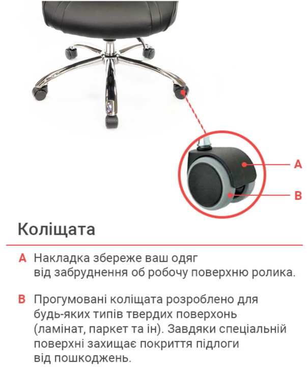 Хрестовина. Металева хрестовина крісла Сетіф міцна і надійна, розрахована на навантаження до 120 кг. Роликові опори забезпечують кріслу мобільність. До цього крісла відмінно підійдуть ролики з хромованими накладками в стилі металевих деталей крісла. Метал не втратить свою красу з часом, адже покриття дуже міцне і стійке до всіляких зовнішніх факторів.