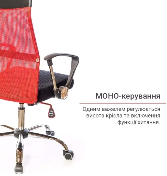 Дизайн. Елегантна комбінація двох матеріалів - сітки і екошкіри - це основний елемент дизайну даної моделі, який робить крісло стильним і повітряним.