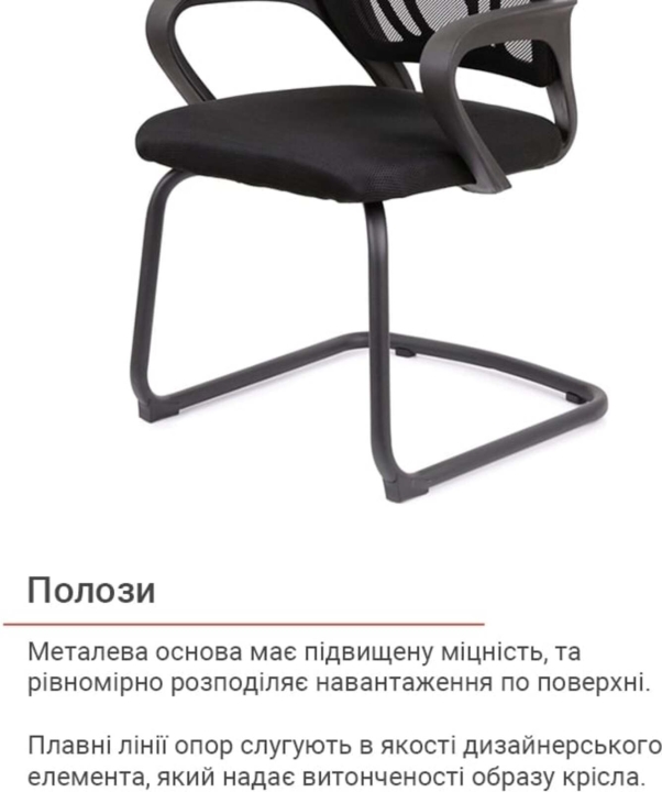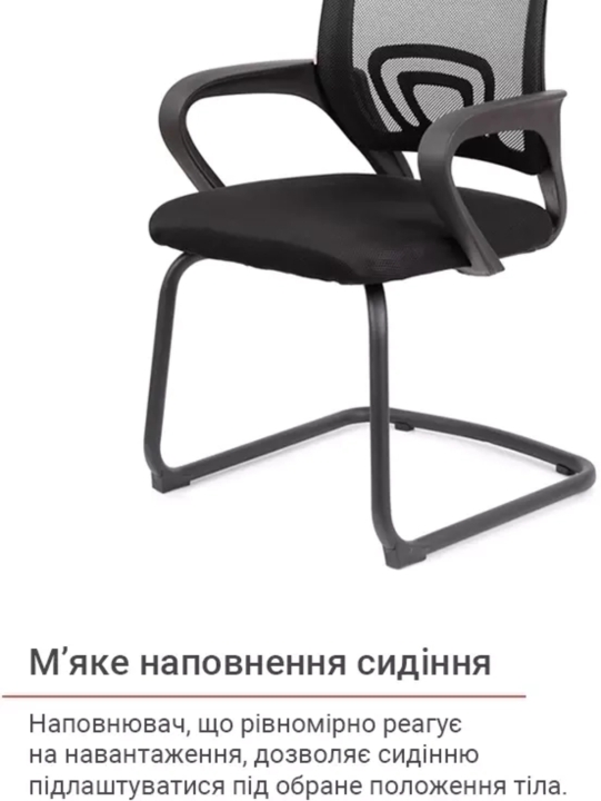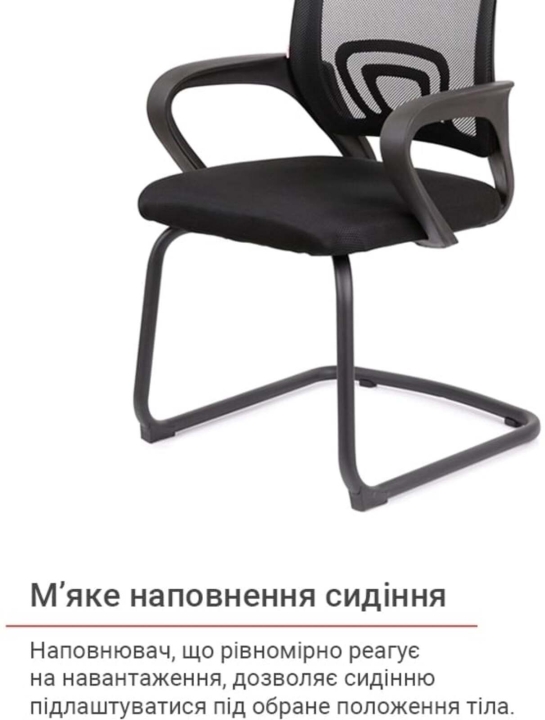 Дизайн. Зовнішній вигляд крісла Тіто стильний і легкий завдяки повітряній сітчастій оббивці та незвичайній формі спинки. Чорний колір гармонійно впишеться в будь-який інтер'єр, а в поєднанні з полупроззорістю матеріалу спинки, крісло виглядає стильним і сучасним.