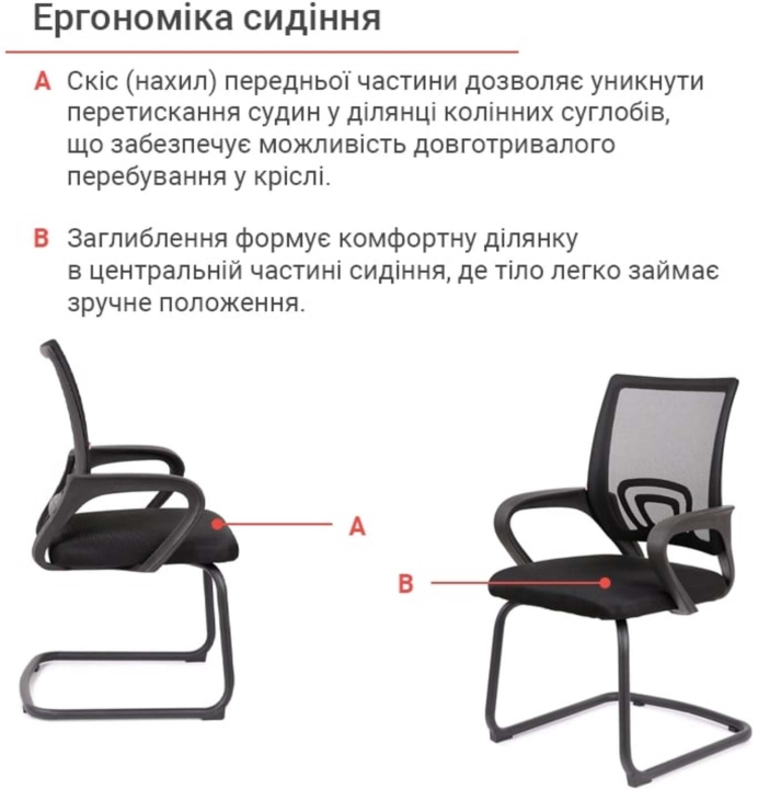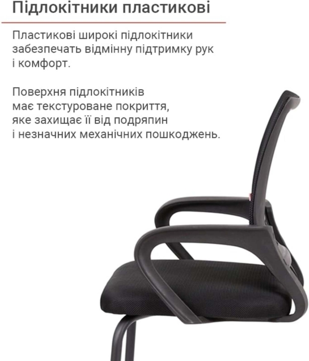 Підлокітники. Пластикові широкі підлокітники, встановлені в даній моделі, забезпечать відмінну підтримку рук. Поверхня підлокітників має текстуроване покриття, яке захищає її від подряпин і незначних механічних пошкоджень.