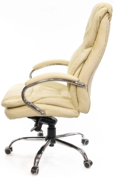 Крісло АКЛАС Флорида CH MB (Шкіра LC-F Beige) - офісне крісло преміум класу, яке користується стабільним попитом у наших покупців завдяки своєму привабливому зовнішньому вигляду, правильній ергономіці та відмінній якості матеріалів і збірки. Дана модель займе гідне місце як в стильному кабінеті ТОП-менеджера, так і в затишній домашній обстановці. Зовнішній вигляд крісла Флорида не залишить байдужим найвибагливішого покупця - елегантні вигини і плавні лінії радують око - в таке крісло відразу хочеться присісти і переконається в його м'якості і зручності. Головна фішка даної моделі - м'які подушки, які створюють правильний і гарний, продуманий до дрібниць, рельєф і, відповідно, зручну посадку. Висока спинка з інтегрованим підголовником розрахована на користувача високого і вище середнього зросту. Зручні бічні валики забезпечують хорошу підтримку спини. М'якість сидіння і спинки забезпечується за рахунок товстого шару якісного поролону, який не просідає з часом, а в подушках використаний спеціальний меблевий силіконовий наповнювач.