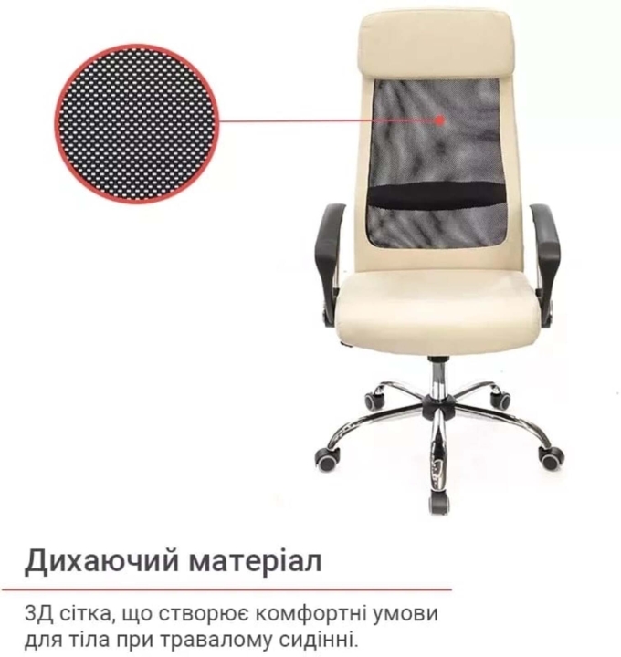 Дизайн. Елегантна комбінація двох матеріалів - сітки і тканини - це основний елемент дизайну даної моделі, який робить крісло стильним і повітряним.