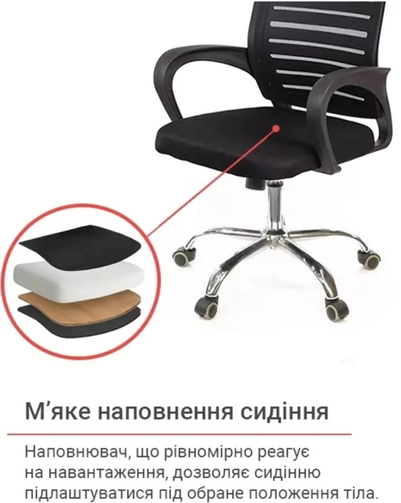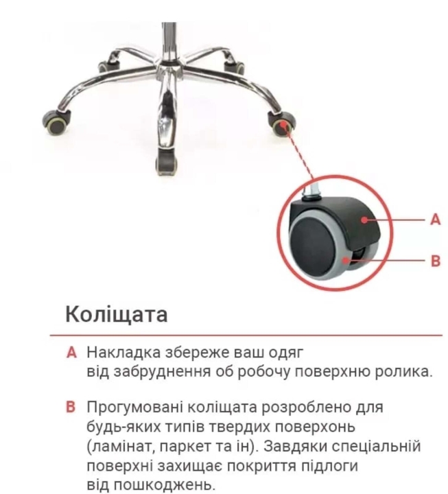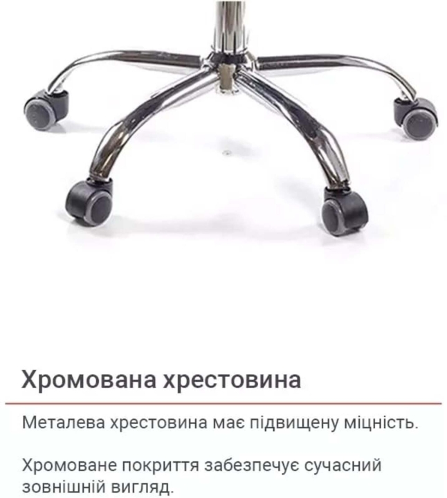 Хрестовина. Хромована хрестовина дуже міцна, дозволяє витримувати навантаження до 120 кг. Покриття стійке до подряпин та механічних пошкоджень, що дозволить надовго зберегти привабливий зовнішній вигляд. Особливості. Ця модель – ідеальний вибір для тих, хто віддає перевагу мінімалізму, компактності, сучасним «дихаючим» матеріалам, а головне, якісному товару за помірну вартість. Тут усі деталі добре продумані, забезпечують комфорт, зручність та тривалість в експлуатації.