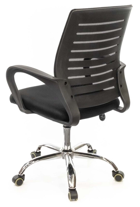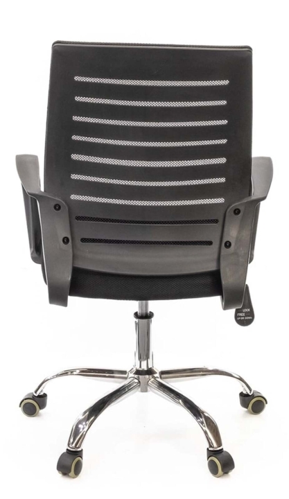 Дизайн. Крісло Фіджі ТМ АКЛАС виконане в стилі мінімалізму: воно компактне, має середню висоти спинку, прості та зручні підлокітники, а також класичне поєднання чорної оббивки з хромованою хрестовиною. Оригінальний гратчастий каркас спинки додає вишуканості даної моделі.