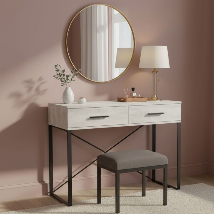 Колекція Ascet лаконічна та функціональна. Меблі з цієї колекції чудово доповнять інтер’єр в стилі “лофт”. Прості форми, прямі лінії та універсальні кольори роблять колекцію простою та зрозумілою для користувача, а доступність продукції стане приємним бонусом для гаманця. Нічого зайвого, тільки зручність. Стіл туалетний Ascet. Оригінальний функціональний стіл. Компактний легкий та міцний. Ніжки з металевого профілю надають йому візуальної лекгості.
