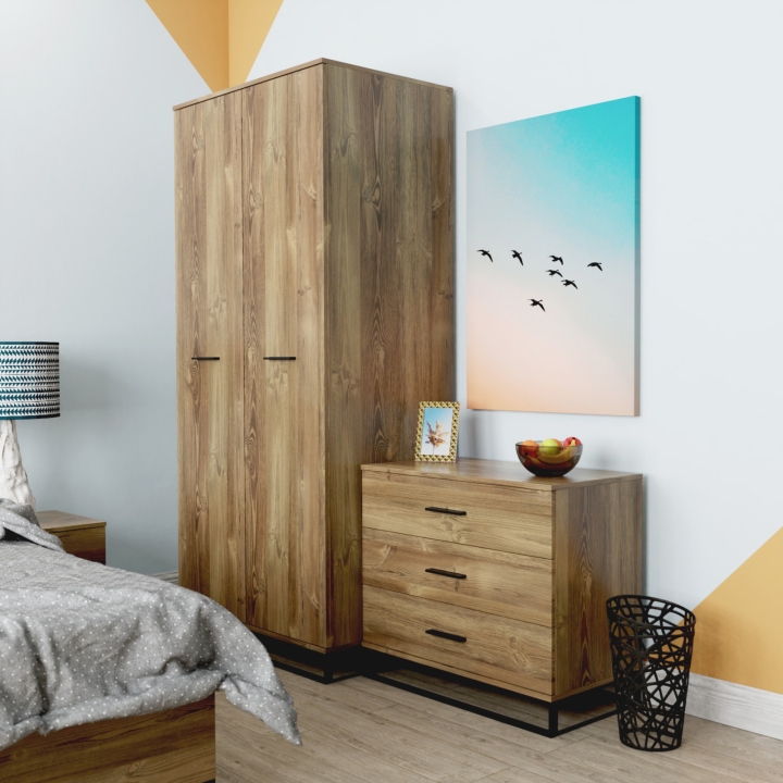 Проста, міцна та містка шафа в стилі лофт – вдале придбання для сучасної спальні. Адже він не лише добре справляється зі своїми безпосередніми функціональними завданнями, а й ефектно доповнює інтер'єр. Шафа Ascet у цьому відношенні просто ідеальна! Його лаконічний дизайн, прямі та чіткі форми, надійна конструкція з суцільнометалевою основою та кольорова гама в дусі лофта забезпечують високі естетичні та практичні характеристики. За двома дверцятами - секція зі штангою для розвішування одягу і дві полиці вгорі і внизу. Все максимально зручно, надійно, ґрунтовно та розраховано на довгі роки експлуатації. Не всі шафи можуть похвалитися такими параметрами!
