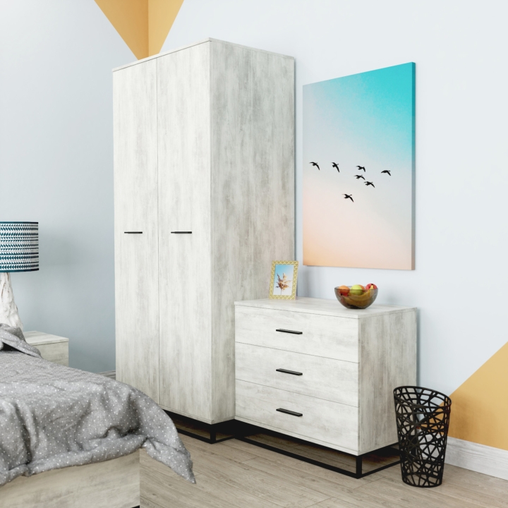 Міцний та місткий комод простої конструкції – бажаний гість в інтер’єрах лофт. Відмінно справляючись із завданням зберігання найрізноманітніших речей, комод Ascet гармонійно доповнює простір, не перегружуючи його. Компактний розмір дозволяє легко розміщуватися в невеликих кімнатах і навіть окремих функціональних зонах приміщення. У трьох висувних шухлядах досить місця для всього необхідного, а верхню поверхню можна використовувати в якості полиці або стільниці. Це універсальні, зручні та надійні меблі для спальні, комфортні у повсякденному використанні й легко витримуючі експлуатаційні навантаження.
