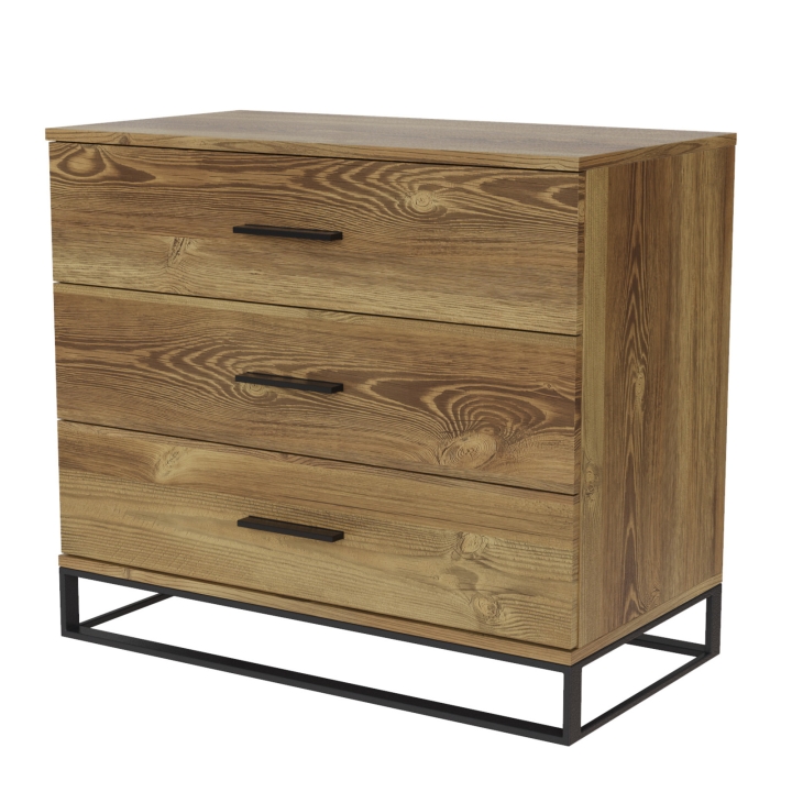 Міцний та місткий комод простої конструкції – бажаний гість в інтер’єрах лофт. Відмінно справляючись із завданням зберігання найрізноманітніших речей, комод Ascet гармонійно доповнює простір, не перегружуючи його. Компактний розмір дозволяє легко розміщуватися в невеликих кімнатах і навіть окремих функціональних зонах приміщення. У трьох висувних шухлядах досить місця для всього необхідного, а верхню поверхню можна використовувати в якості полиці або стільниці. Це універсальні, зручні та надійні меблі для спальні, комфортні у повсякденному використанні й легко витримуючі експлуатаційні навантаження.