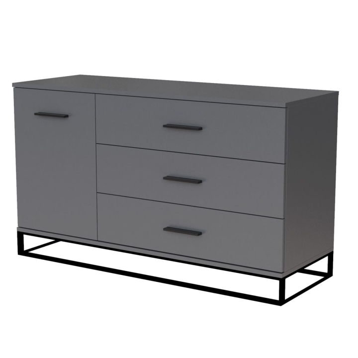 Комод у стилі лофт – це максимум зручності, організованості та витонченої простоти. У ньому легко розміститься пристойна кількість речей, вирішивши питання зберігання практично й естетично. Комод Ascet 1200 оснащено трьома місткими висувними шухлядами і додатковою бічною секцією, закритою дверцятами. Корпус і фасади виконані з ламінованої ДСП 16 мм товщиною, а стійкість конструкції забезпечує суцільнометалева опора з труби 10х30 мм. Це міцні, надійні та витривалі меблі універсального застосування, які будуть доречні і у спальні, і у вітальні, і в їдальні, і у гардеробній кімнаті.