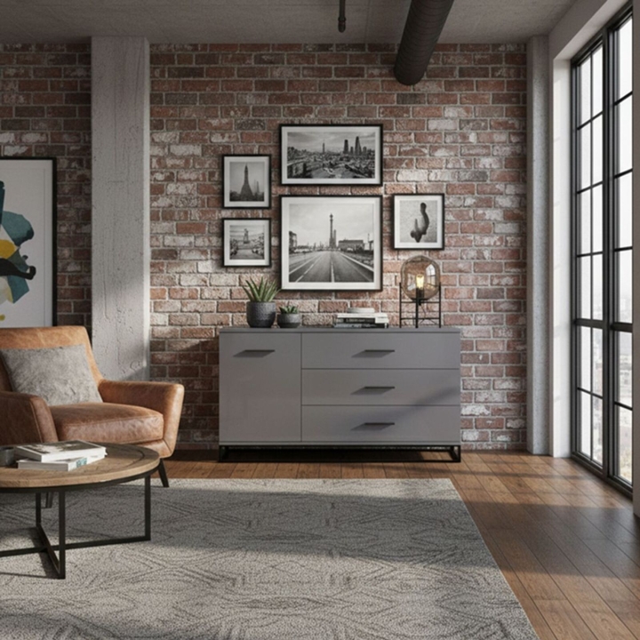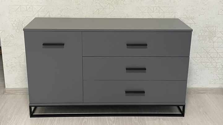 Комод в стиле лофт – это максимум удобства, организованности и утонченной простоты. В нем легко разместится приличное количество вещей, решив вопрос хранения практически и эстетично. Комод Ascet 1200 оснащен тремя вместительными выдвижными ящиками и дополнительной боковой секцией, закрытой дверцей. Корпус и фасады выполнены из ламинированной ДСП 16 мм толщиной, а стойкость конструкции обеспечивает цельнометаллическая опора из трубы 10х30 мм. Это прочная, надежная и выносливая мебель универсального применения, которая будет уместна и в спальне, и в гостиной, и в столовой, и в гардеробной комнате.