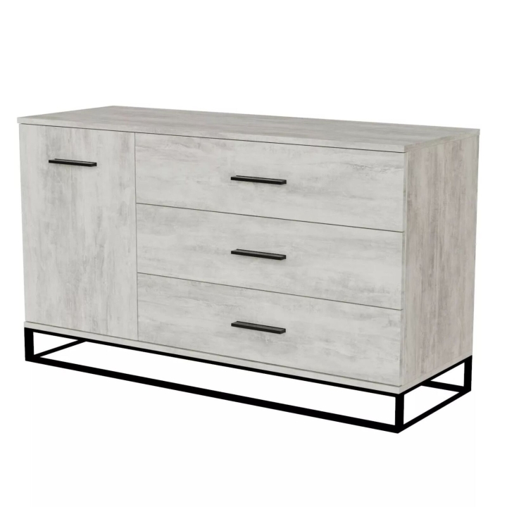 Комод у стилі лофт – це максимум зручності, організованості та витонченої простоти. У ньому легко розміститься пристойна кількість речей, вирішивши питання зберігання практично й естетично. Комод Ascet 1200 оснащено трьома місткими висувними шухлядами і додатковою бічною секцією, закритою дверцятами. Корпус і фасади виконані з ламінованої ДСП 16 мм товщиною, а стійкість конструкції забезпечує суцільнометалева опора з труби 10х30 мм. Це міцні, надійні та витривалі меблі універсального застосування, які будуть доречні і у спальні, і у вітальні, і в їдальні, і у гардеробній кімнаті.