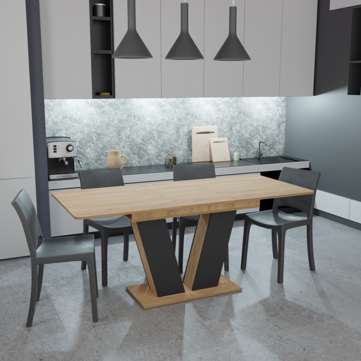Стиль и изысканность стола подчеркиваются двумя доступными вариантами декоров: дуб крафт белый/графит и дуб крафт золотой/графит. Выберите тот, который лучше всего впишется в дизайн вашей кухни и создаст уютную атмосферу для семейных обедов и встреч с друзьями.