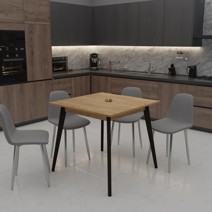 Обеденный стол для кухни "БОН" от украинской мебельной фабрики "НЕМАН" – это изысканный и практичный предмет мебели, созданный для того, чтобы вдохнуть в ваш интерьер нотки стиля и уюта. Габаритные размеры стола, составляющие 780 мм в длину, 780 мм в ширину и 750 мм в высоту, специально разработаны для обеспечения комфортного пространства приема пищи.