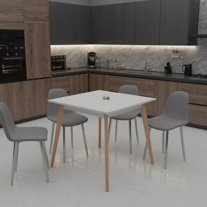 Обеденный стол для кухни "БОН" от украинской мебельной фабрики "НЕМАН" – это изысканный и практичный предмет мебели, созданный для того, чтобы вдохнуть в ваш интерьер нотки стиля и уюта. Габаритные размеры стола, составляющие 780 мм в длину, 780 мм в ширину и 750 мм в высоту, специально разработаны для обеспечения комфортного пространства приема пищи.