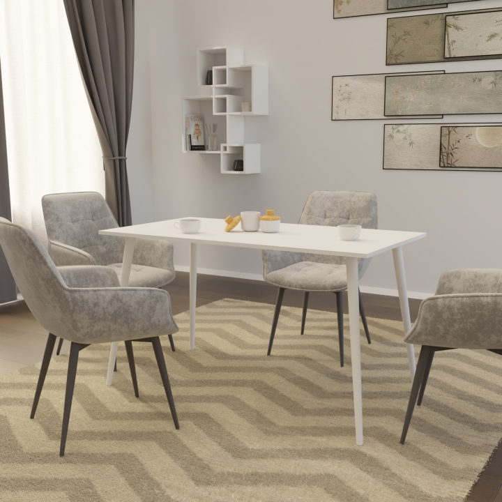 Основной частью стола является его столешница, которая изготовлена из высококачественного 16 мм ДСП. Круглые ножки имеют размер 45х45х730 мм и доступны в трех различных цветах: "Венге", "Белый" и "Лак". Это позволяет вам гармонично совместить стол с другой мебелью вашего помещения и создать целостный дизайн.