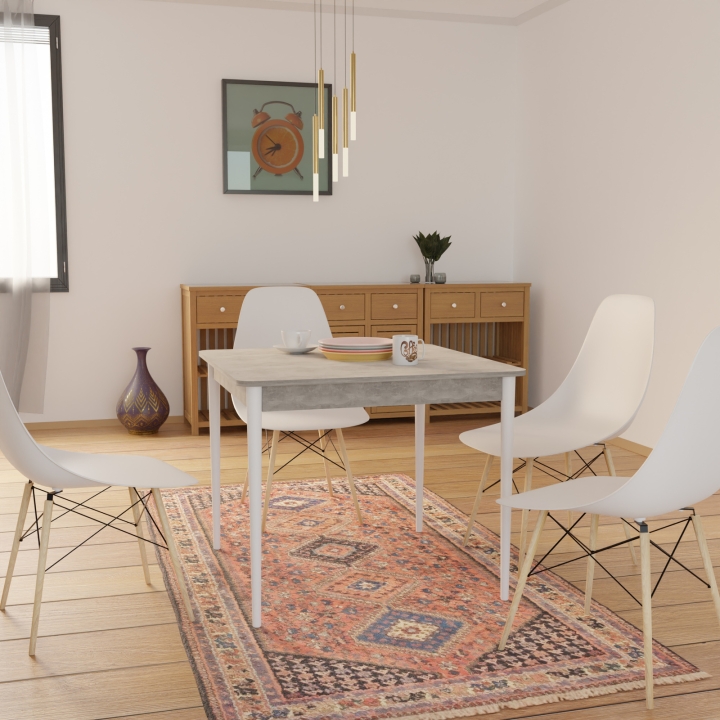 Размеры стола "МОНО" составляют 880х880х750 мм, что делает его идеальным вариантом для обеденной комнаты или кухни. Этот размер обеспечивает достаточно места для комфортного расположения вашей семьи и гостей. Вы сможете наслаждаться приятными обедами и ужинами, сидя за этим столом.