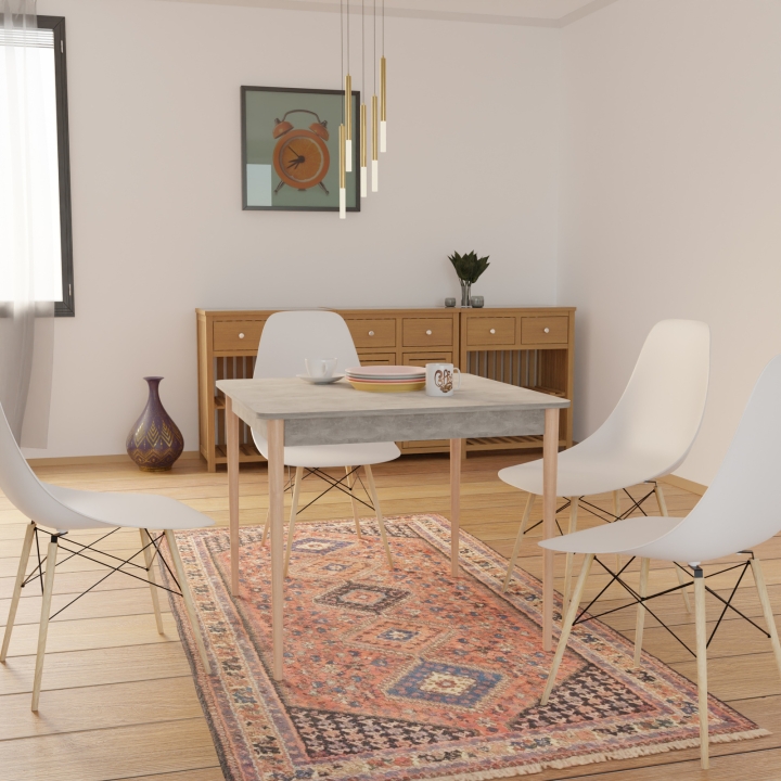 Размеры стола "МОНО" составляют 880х880х750 мм, что делает его идеальным вариантом для обеденной комнаты или кухни. Этот размер обеспечивает достаточно места для комфортного расположения вашей семьи и гостей. Вы сможете наслаждаться приятными обедами и ужинами, сидя за этим столом.
