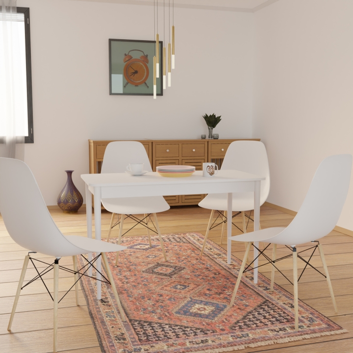 Размеры стола составляют 1180х580х750 мм, что делает его идеальным вариантом для небольших кухонь или столовых зон. Этот стол придает пространству легкости и ощущение открытости, и он идеально подходит для семейных обедов и встреч с друзьями.