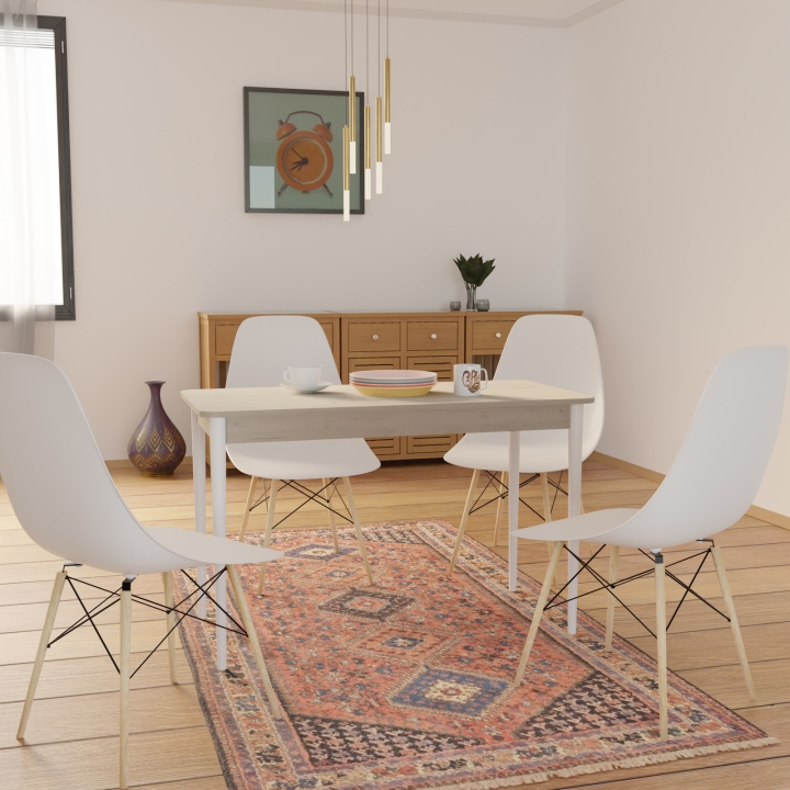 Размеры стола составляют 1180х580х750 мм, что делает его идеальным вариантом для небольших кухонь или столовых зон. Этот стол придает пространству легкости и ощущение открытости, и он идеально подходит для семейных обедов и встреч с друзьями.