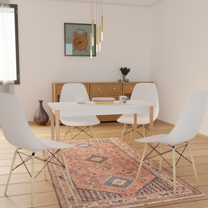 Размеры стола составляют 1180х580х750 мм, что делает его идеальным вариантом для небольших кухонь или столовых зон. Этот стол придает пространству легкости и ощущение открытости, и он идеально подходит для семейных обедов и встреч с друзьями.