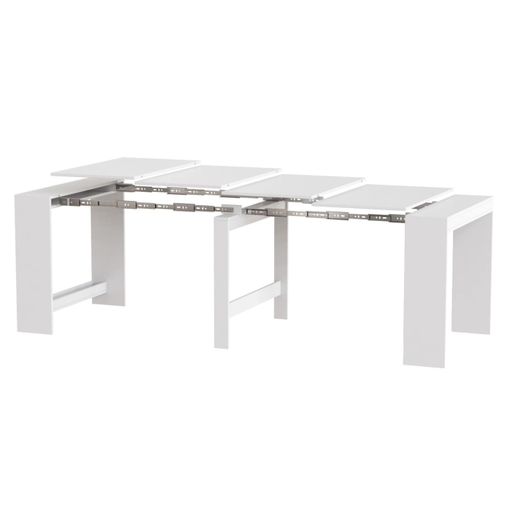 Python вражає своїми можливостями. Він має багато варіацій розмірів поверхні: від 90*43 см в складеному вигляді, до 90*240 см повністю розкладеному, і ще чотири проміжні варіанти. Компактний складений стіл не займає багато місця в кімнаті, а за потреби легко перетворюється у великий повноцінний стіл для прийому гостей. Класний стіл для великих і малих компаній, що б не сталося. Виготовлено з якісніх та безпечних матеріалів, зміцнені та надійні металеві телескопічні направляючі витримують значні навантаження.