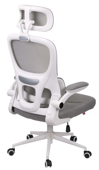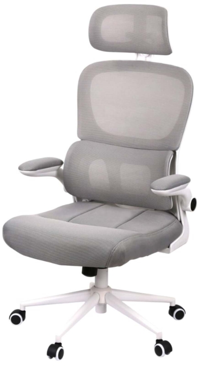Підлокітники. У даній моделі стильні відкидні підлокітники з білого пластику, доповнені м'якими накладки, що послужать вам комфортної опорою. Горизонтальна робоча поверхня дозволяє зручно розмістити руки і зняти зайве навантаження з плечових суглобів. Гвинтові кріплення підлокітників дають можливість підняти їх вертикально, і присунути крісло впритул до столу, коли крісло не використовується.