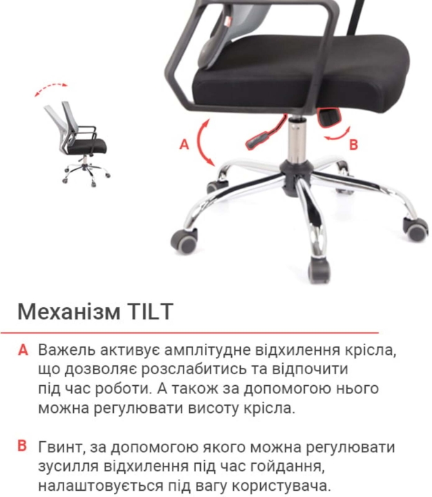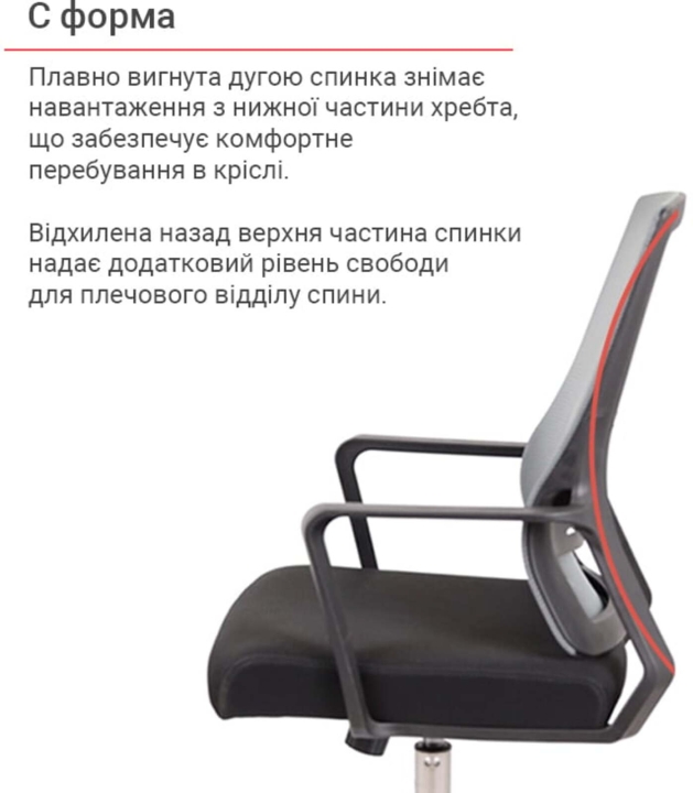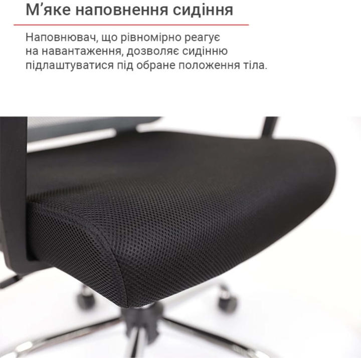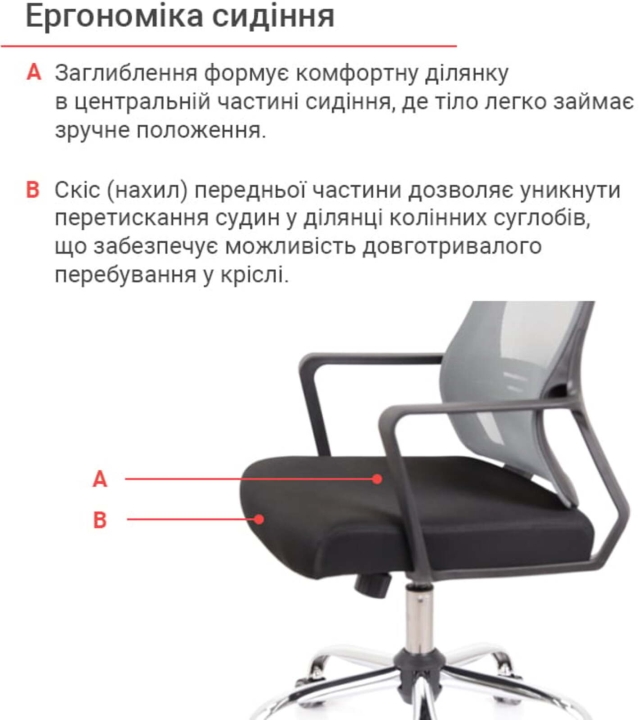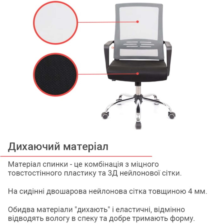 Дизайн. Ненав'язливий, мінімалістичний дизайн цієї моделі робить її універсальною. Таке крісло виглядає стильно і відмінно впишеться в офісний простір або домашню обстановку. Сітчаста спинка робить крісло повітряним та легким, а металева основа надає йому трохи солідності.