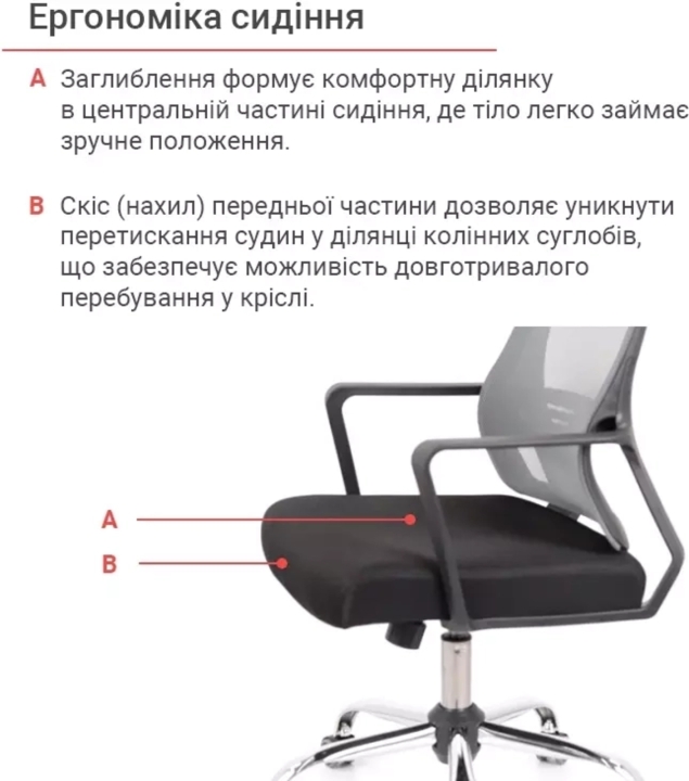 Особливості. В основі сидіння використовується гнута клеєна фанера з поролоновим наповненням під оббивкою. Каркас спинки - це міцний товстостінний пластик з внутрішніми ребрами жорсткості, який має прогин в поперековій області для ергономічної підтримки спини. Крісло Асті – це Ваш вибір, якщо ви шукаєте стильне, практичне та зручне крісло за прийнятною ціною. У ньому ви зможете плідно працювати багато годин поспіль, не відволікаючись на жодні зовнішні чинники і не відчуваючи втоми.