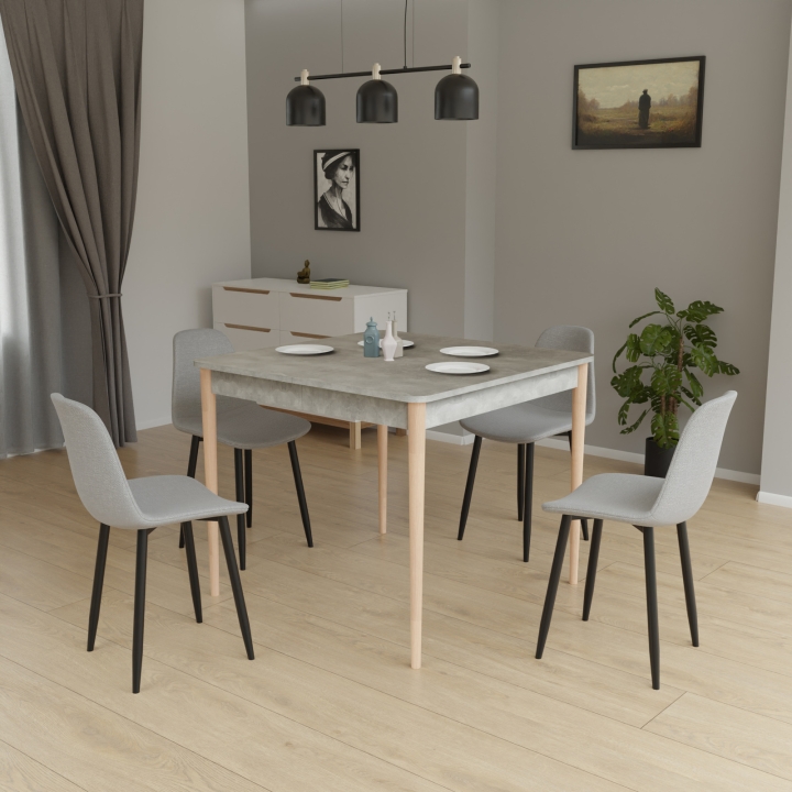 Столешница стола изготовлена из шестнадцати миллиметровой ДСП, что гарантирует его устойчивость и долговечность. Выбор такого материала подчеркивает ваше внимание к качеству и обеспечивает надежную основу для всех видов использования. Вариативность цветов столешницы - "Бетон", "Белый" и "Дуб сонома" - позволяет вам гармонично вписать стол в любой интерьер. Опора стола - это ножки КТ (Круглая точеные) 45х45х730 мм, которые отличаются элегантной простотой и надежностью.