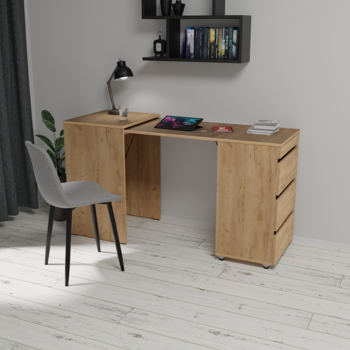 Основным преимуществом стола-тумбы является его раскладная конструкция. В разложенном варианте размеры стола составляют 1400x502x720 мм, что предоставляет вам достаточно простора для использования его как рабочего стола, оборудования для бара или даже стола для вечернего отдыха с друзьями. Однако, если вам нужно сэкономить место, вы можете легко сложить тумбу до размеров 463x502x720 мм, обеспечив больше свободного пространства в вашей комнате.