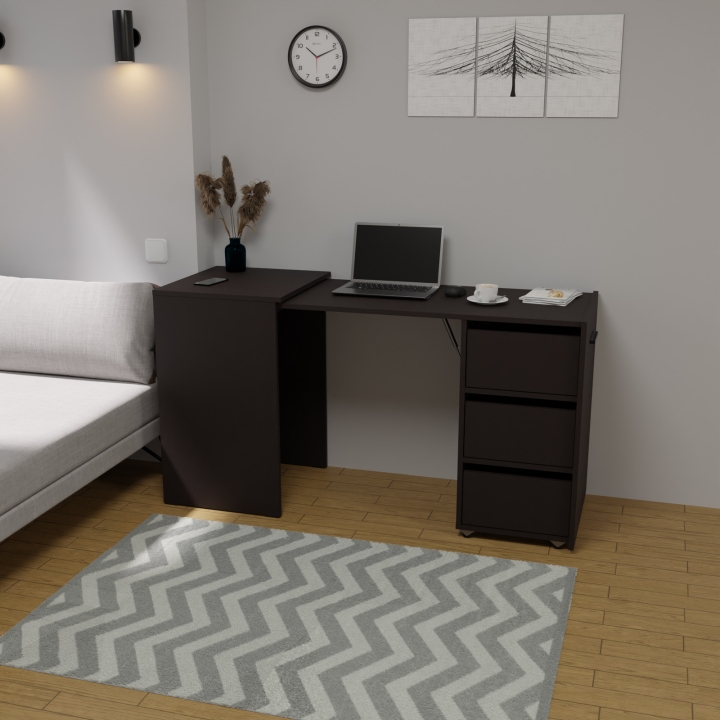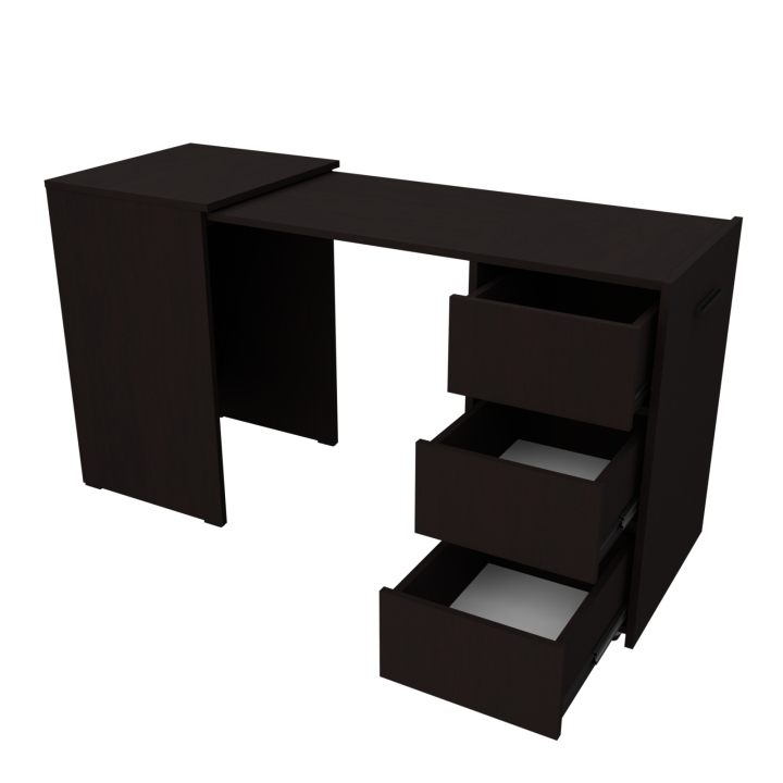 В развернутом положении, письменный стол-тумба имеет впечатляющие размеры 1400х502х720 мм, что предоставляет вам огромную рабочую поверхность для ваших задач. Однако, когда вы не используете стол, вы можете свернуть его до невероятно компактных размеров 463х502х720 мм, что делает его идеальным для небольших комнат или студий.