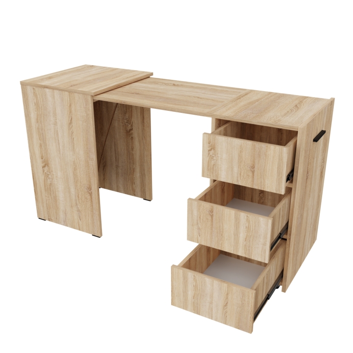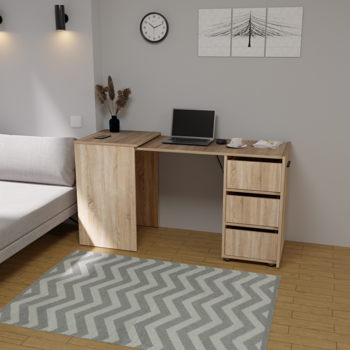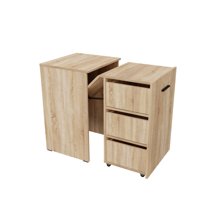 В развернутом положении, письменный стол-тумба имеет впечатляющие размеры 1400х502х720 мм, что предоставляет вам огромную рабочую поверхность для ваших задач. Однако, когда вы не используете стол, вы можете свернуть его до невероятно компактных размеров 463х502х720 мм, что делает его идеальным для небольших комнат или студий.