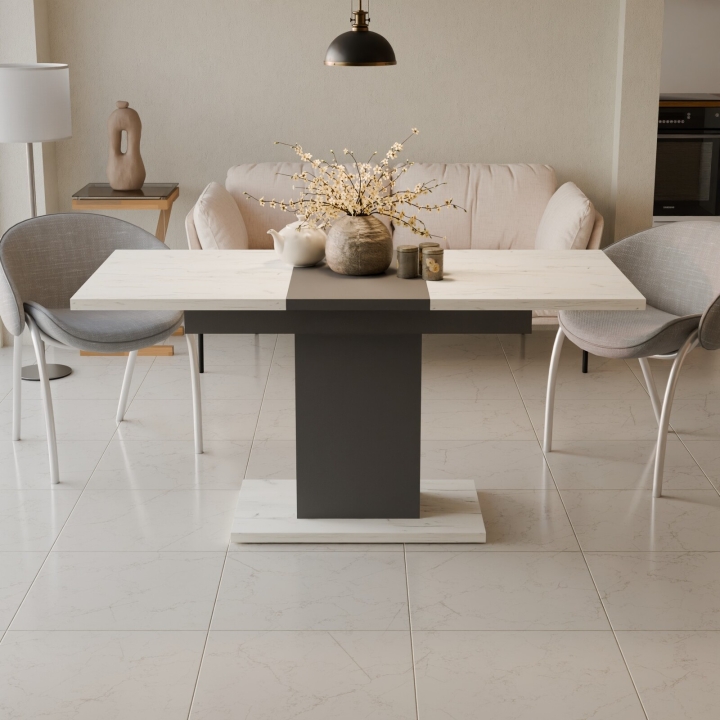 Стол раздвижной Неман ГРЕЙС Дуб крафт белый/Графит