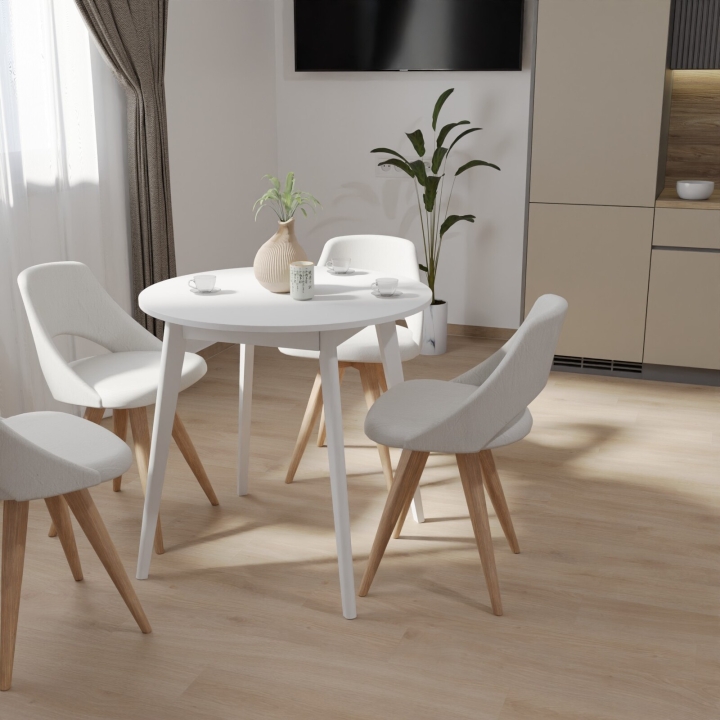 Обеденный круглый стол "БОН 775х746 МДФ" от украинской мебельной фабрики "НЕМАН" - это идеальное сочетание функциональности, элегантности и прочности, которое обогатит вашу кухню и создаст уютную атмосферу для обедов и посиделок в кругу семьи и друзей.