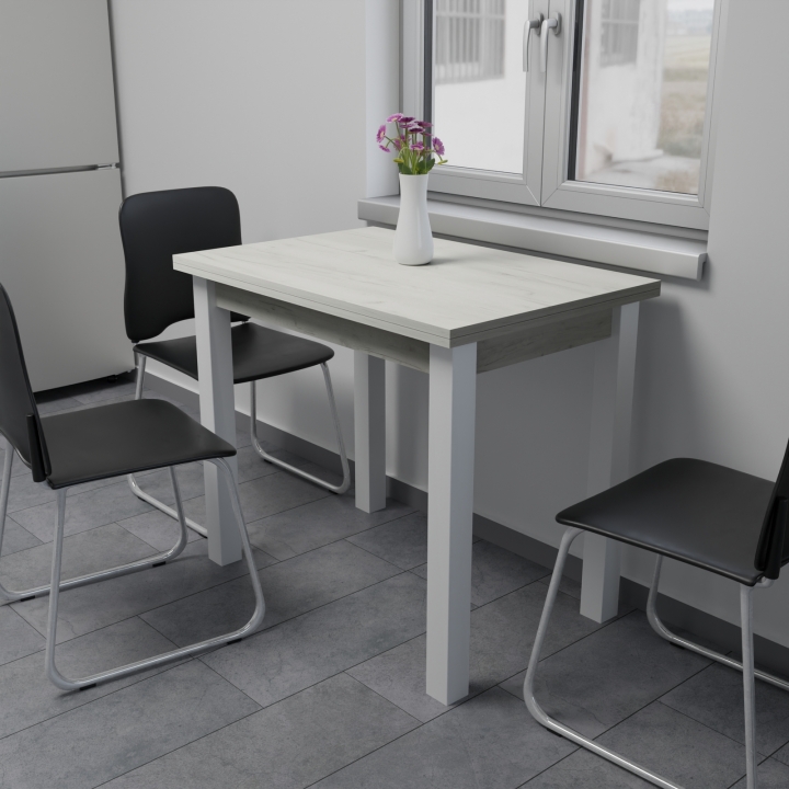 Стол обеденный раскладной Неман ЮК Дуб крафт белый/Белый