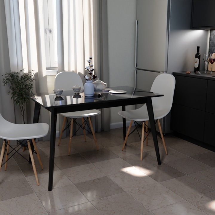 С элегантными габаритными размерами 1180 мм в длину, 680 мм в ширину и 750 мм в высоту, этот стол прекрасно вписывается в разнообразные кухонные пространства, обеспечивая комфортное размещение до четырех человек.