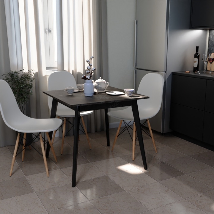 С элегантными габаритными размерами 780 мм в длину, 780 мм в ширину и 750 мм в высоту, этот стол прекрасно вписывается в разнообразные кухонные пространства, обеспечивая комфортное размещение до четырех человек.