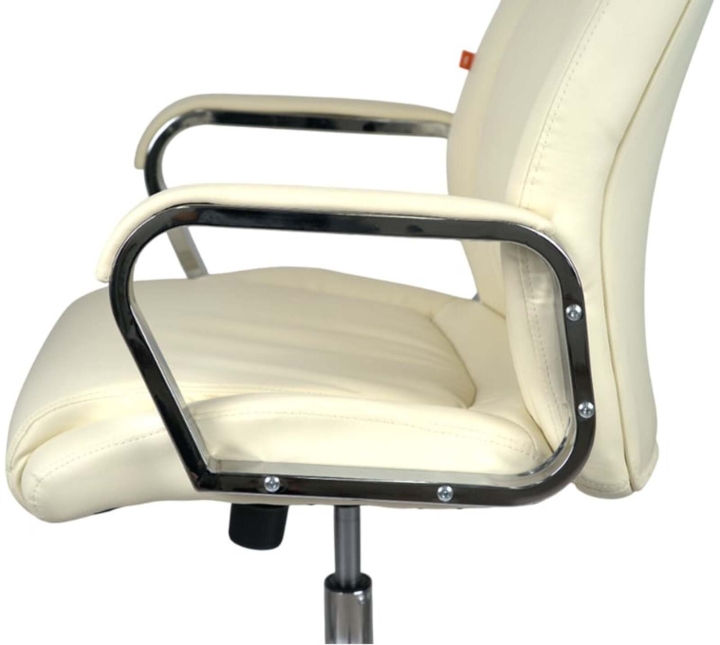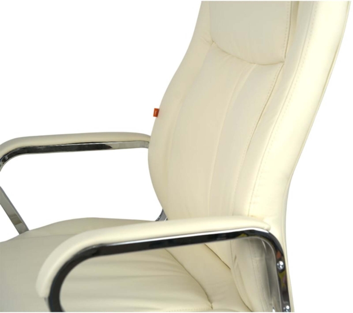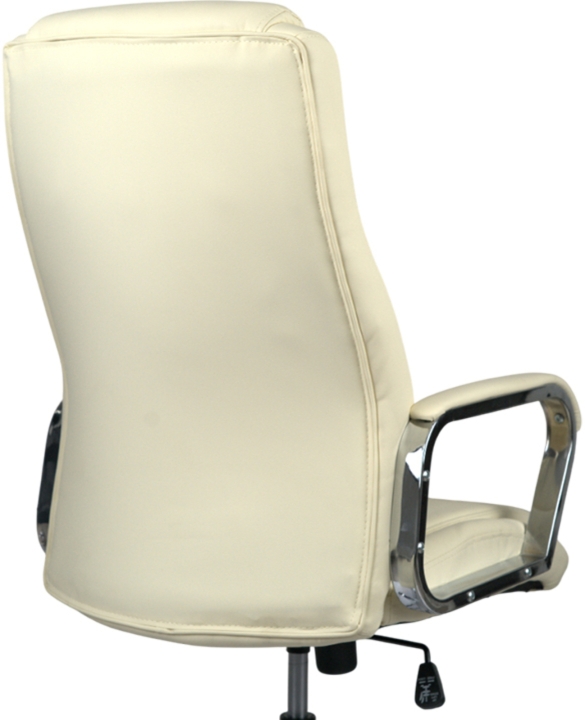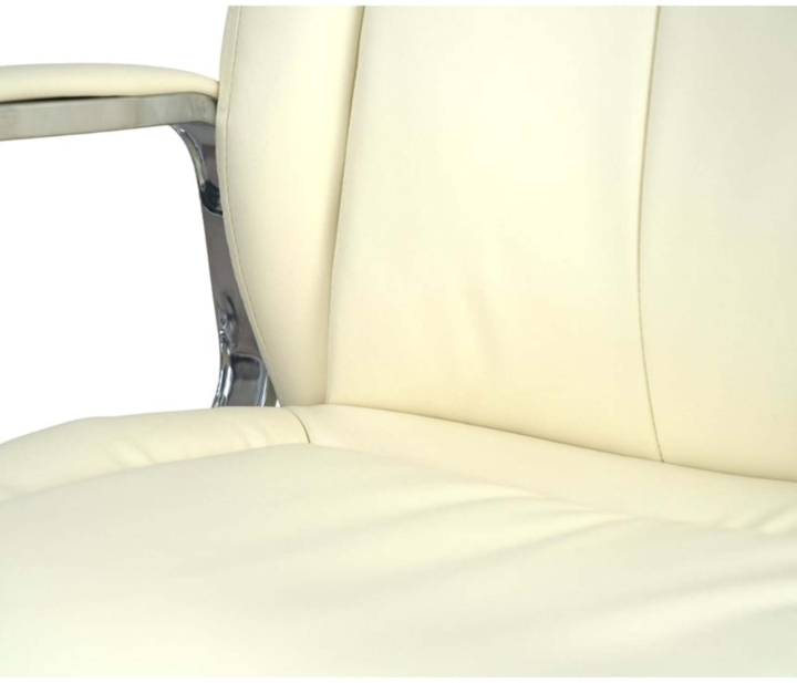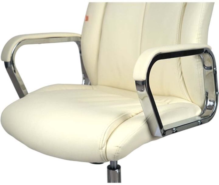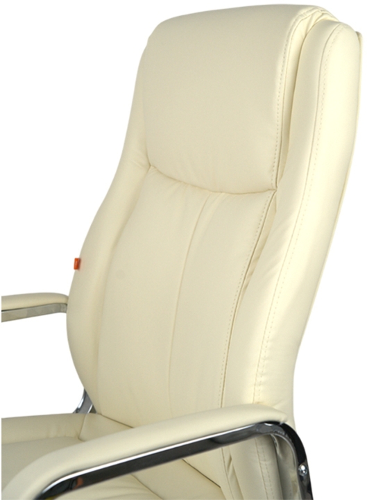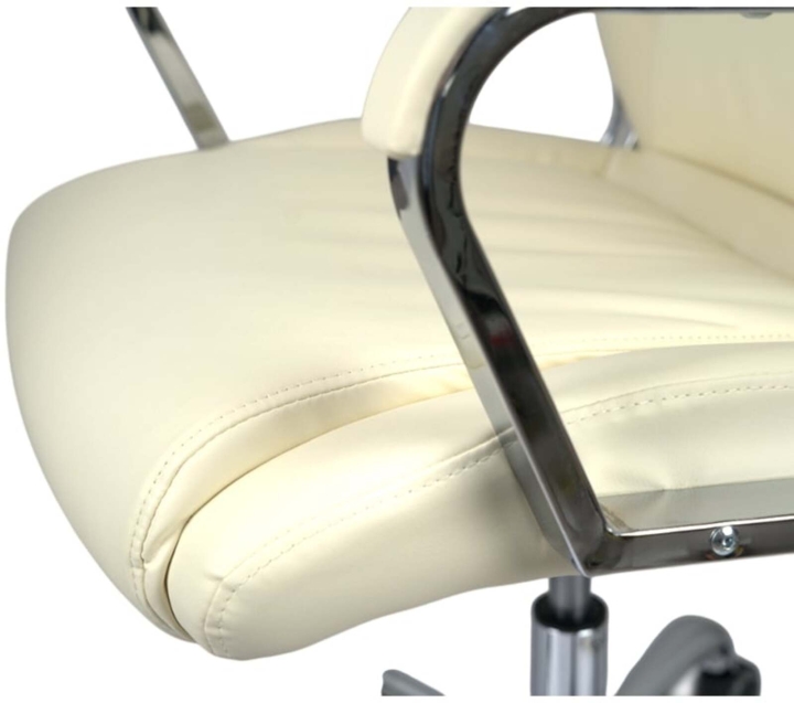 Дизайн. Елегантна класика – ось як можна охарактеризувати це крісло. Силует досить стриманий, але завдяки вдалому поєднанню ліній прошивки, шкіри та хромованого металу модель виглядає розкішно та затишно. Сидіння та спинка прикрашені перетяжками прошивки, які разом із товстим шаром наповнювача формують зручне посадкове місце. Блискучі металеві деталі гармонійно обрамляють оббивку і підкреслюють красу крісла. Світла екокожа відмінно доповнить інтер'єр жіночого кабінету або кабінету зі світлим або чорним деревом.
