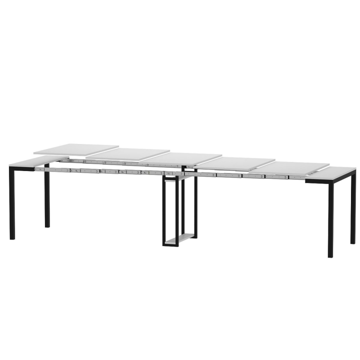 Sensei легко трансформується завдяки п’яти проміжним вставкам, що дозволяють регулювати довжину стола. Мінімальна довжина становить 530 мм, у вигляді тумби, а максимальна — 3300 мм, з кроком у 550 мм. Це забезпечує гнучкість для різних потреб — від щоденного користування до святкових подій.