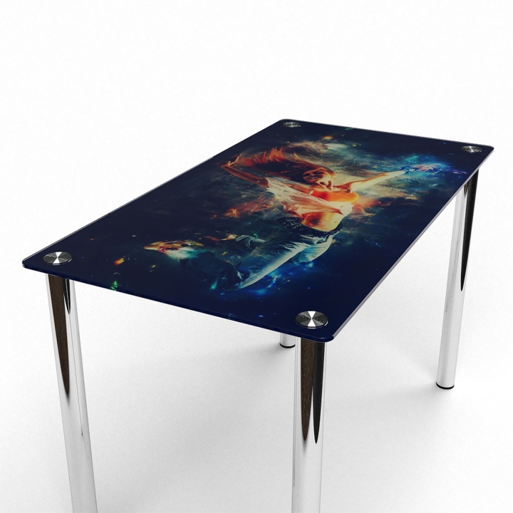 Нова модель Стіл БЦ-стіл Фотодрук Еко - гармонійне поєднання загартованого скла і хромованого металу. Величезна перевага меблів - застосування якісної фурнітури в виробництві, завдяки чому виріб довговічний та практичний.