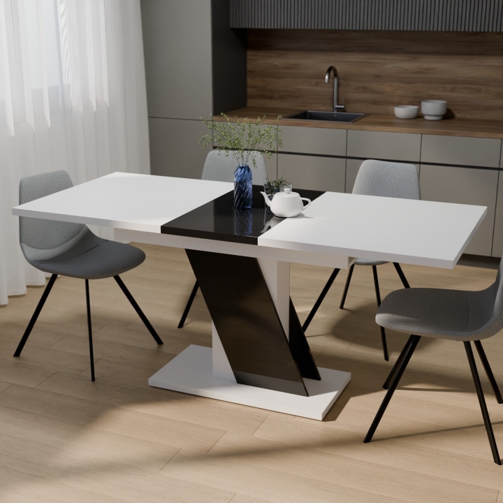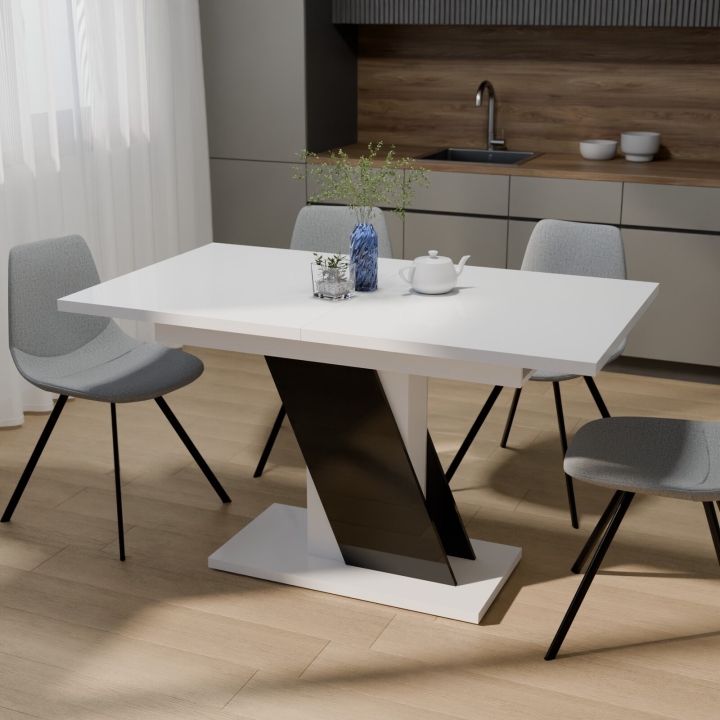 Обеденный раздвижной стол Неман ТРИОН МДФ Белый/Черный глянец
