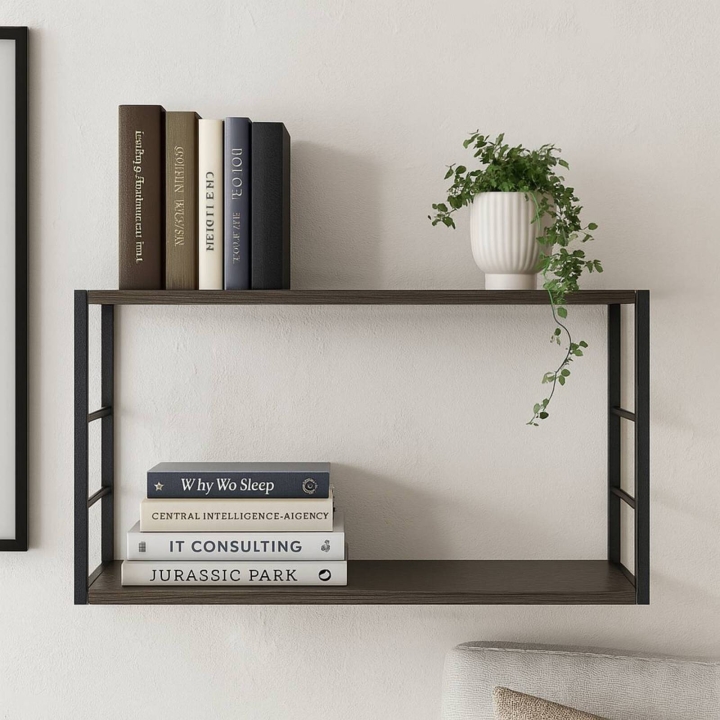Універсальність і функціональністьНавісні полиці – це незамінний елемент інтер’єру, який допомагає організувати простір і зберігати в порядку різноманітні предмети. Полиця книжкова Ferrumon 2 відзначається своєю простотою та функціональністю, що робить її ідеальним рішенням для будь-якої кімнати: від кухні до передпокою, від вітальні до офісу. Вона дозволяє зберігати все, що ви часто використовуєте, прямо під рукою, забезпечуючи легкий доступ до необхідних речей.Міцність та довговічністьПолиця книжкова Ferrumon 2 має міцний металевий каркас з порошковим фарбуванням, що гарантує стійкість до механічних пошкоджень і корозії. Таке покриття забезпечує довгий термін служби, зберігаючи при цьому естетичний вигляд. Полички виготовлені з ламінованої ДСП завтовшки 16 мм, що надає їм додаткову стійкість та зносостійкість.Дизайн полиці Ferrumon 2 лаконічний та сучасний, що дозволяє їй легко вписатися в будь-який інтер’єр.З компактними розмірами 63х26х37 см, полиця Ferrumon 2 не займає багато місця, що робить її відмінним вибором для малих кімнат або вузьких простору. Лаконічний дизайн без зайвих деталей дозволяє використовувати її в інтер’єрах у стилі лофт, індастріал, гранж, урбан та інших сучасних напрямках.Відкрита конструкція полиці Ferrumon 2 забезпечує великий простір для організації зберігання різноманітних предметів, що робить її практичною і зручною у використанні. З такою полицею ваш простір буде виглядати організовано і стильно, а ви зможете насолоджуватися зручністю і функціональністю, яку вона приносить.