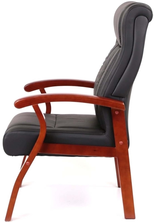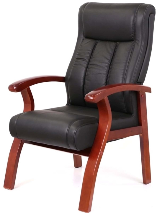 Крісло конференційне АКЛАС Брунор EX CF ECO (PU Чорний) - ідеальний вибір для організації переговорної зони в офісах або домашнього кабінету, де дизайн приміщень витриманий в класичному стилі. Такий стілець вдало впишеться в загальну концепцію розкішного інтер'єру, завдяки досить потужним габаритам і класичних форм. Гарне поєднання тонованого натурального дерева і чорної екокожі або шкіри підкреслює силует крісла . Оббивка виконана  з екокожі, яка поєднує в собі кращі якості натуральної та штучної шкіри або в натуральній шкірі. Зручні дерев'яні підлокітники додадуть максимального комфорту. Особливу увагу варто звернути м'якість спинки та сидіння. Висока спинка з інтегрованим підголовником і правильно сформованим рельєфом підійде для людей високого зросту, ергономічний прогин поперекової області знімуть навантаження з хребта.