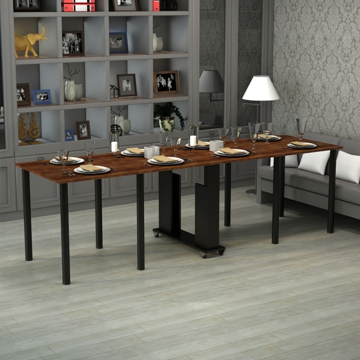 Кухонний стіл-книжка "Діалог" - це компактний, багатофункціональний розкладний стіл, який економить простір Вашої оселі! В складеному вигляді займає дуже мало місця. Можливе розкладання у кількох варіантах в залежності від потреби. При максимальному розкладанні має довжину 2 метри 75 см, що дозволяє розмістити за столом 10-12 чоловік. Наявність колес забезпечує мобільність та легкість у переміщені столу.Колір: Файєрвуд; ДСП: 18 мм; Крайка: пластик 0,5; Колеса: пластикові на металевій основі; Опори: металеві - 710х60 мм (чорні).Розміри:- у складеному вигляді: 800х190х730 (мм);- у напіврозкладеному вигляді: 1470х800х730 (мм);- у розкладеному вигляді: 2750х800х730 (мм).Хочемо звернути Вашу увагу на те що, всі столи які мають систему розкладання таку як "стіл-книжка", можуть містити: невеликий люфт в місцях стиковки стільниць, перепади між стільницями 1- 2 мм, а також зазори між стільницями 1-2 мм. Це є нормою і конструктивною особливістю столів, саме з таким механізмом розкладання.Стіл поставляється у зібраному вигляді - розпакуй та користуйся!Термін доставки від 2 до 10 робочих днів в залежності від наявності на складі.Відвантаження (1 місце):1 місце - вага: 36 кгГабарити: 82*21*68 см