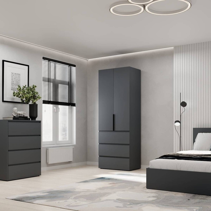 Шафа у спальню дводверна з ящиками "Light" — ідеальне рішення для вашого дому. Ця модель створена для тих, хто цінує комфорт, стиль і функціональність. Завдяки сучасному дизайну та зручному наповненню вона забезпечує максимальну організацію вашого гардероба.
