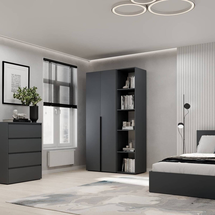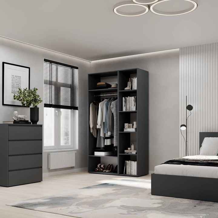 Модель ідеально підійде для спальні, передпокою чи гардеробної кімнати, де важливо підтримувати порядок і зберігати речі компактно Завдяки прямій формі шафа легко впишеться навіть у невеликі приміщення. Поверхні легко очищуються, не втрачаючи привабливого вигляду з часом.