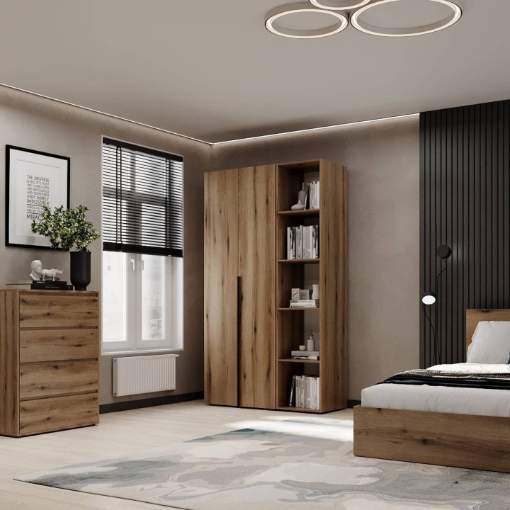 Модель ідеально підійде для спальні, передпокою чи гардеробної кімнати, де важливо підтримувати порядок і зберігати речі компактно Завдяки прямій формі шафа легко впишеться навіть у невеликі приміщення. Поверхні легко очищуються, не втрачаючи привабливого вигляду з часом.